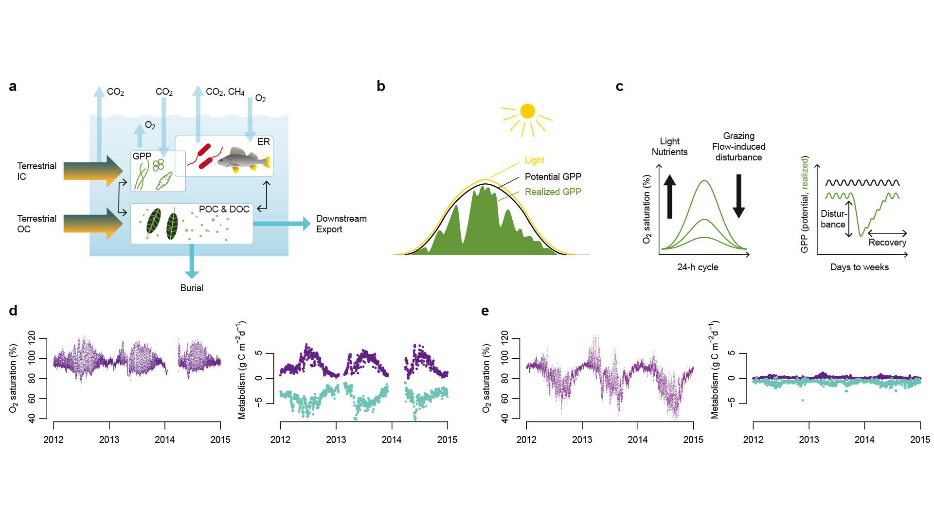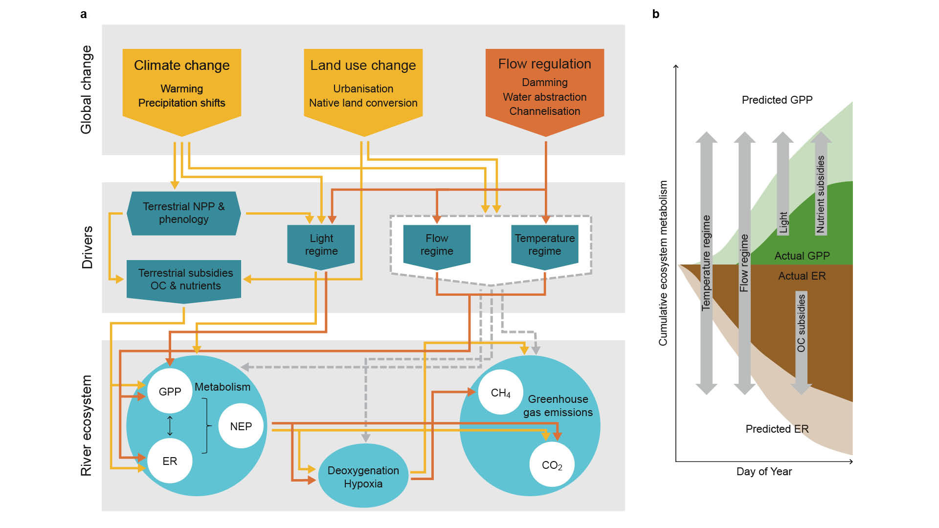 Figures of 'River ecosystem metabolism and carbon biogeochemistry in a changing world' published by Tom J. Battin et al. in 'Nature'. The article can be accessed